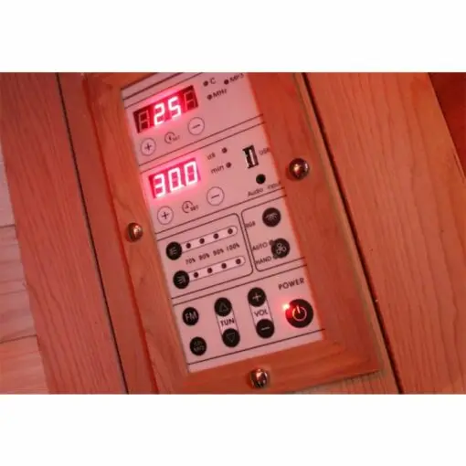 De Health Company sauna’s beschikken over een gebruiksvriendelijk bedieningspaneel om de saunaervaring nog beter te maken. Op het paneel kunt u eenvoudig de temperatuur en tijd instellen. Ook is het mogelijk om via het bedieningspaneel het licht en de kleurentherapie te regelen. Naast praktische functies biedt het bedieningspaneel van de Health Company-serie ook de mogelijkheid om muziek of radio af te spelen in de sauna.